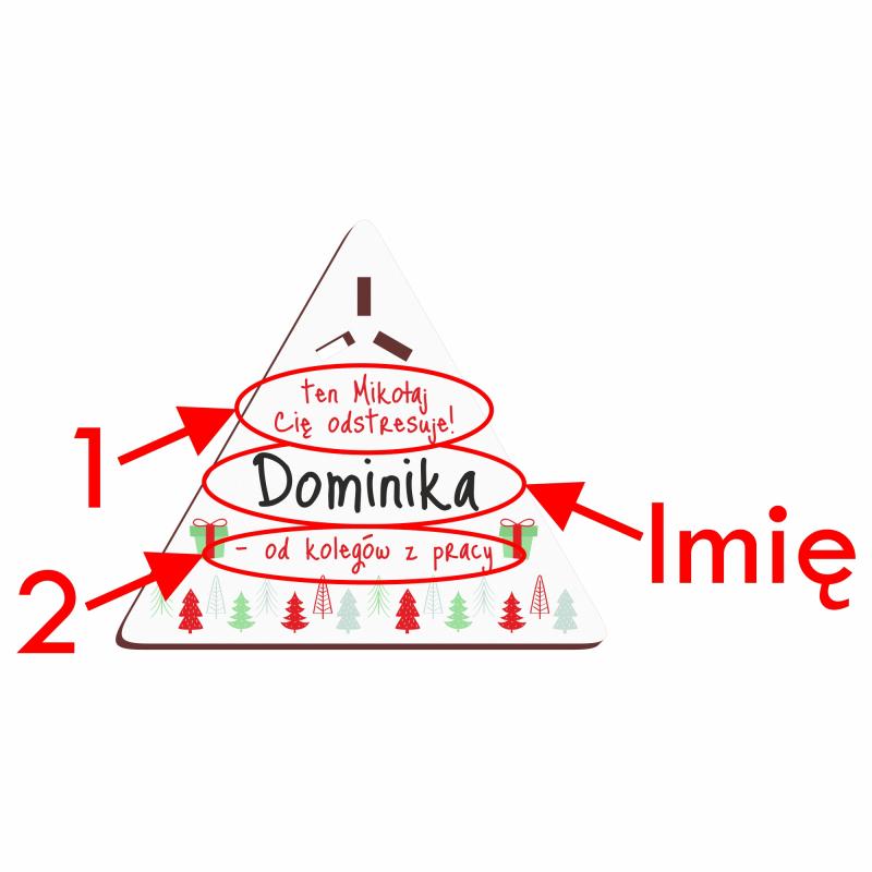 Prosimy wpisać tutaj dokładny tekst, jaki ma zostać umieszczony w tym miejscu. Jeżeli zamawiasz więcej niż jeden i chcesz, aby na każdym było inne imię, wpisz w tym polu te imiona, rozdzielając przecinkiem. Jeśli imię będzie bardzo długie, zostanie pomniejszone tak, aby zmieściło się w docelowym polu. Jeśli chcesz, aby to miejsce było puste, zaznacz "Nie chcę personalizować tego pola (brak tekstu)".