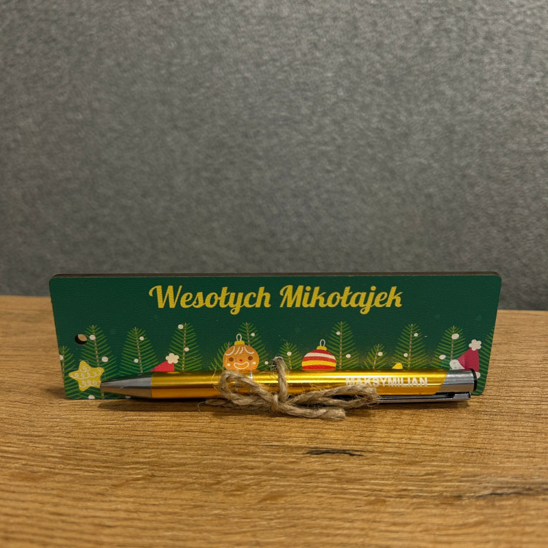 Zakładka z długopisem dla ucznia na prezent na Mikołajki i Święta