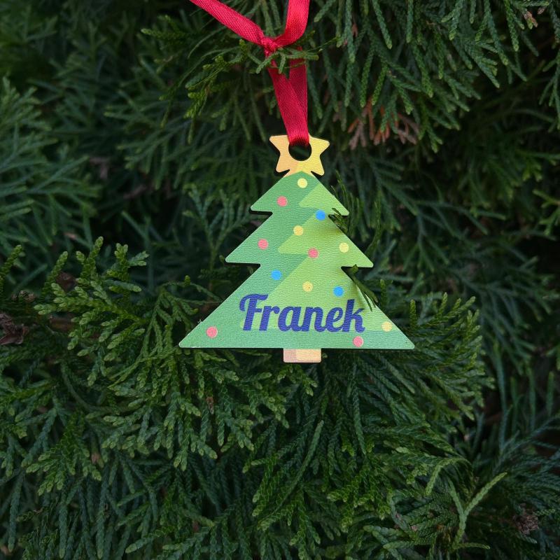 Bombka zawieszka w kształcie choinki z imieniem ozdoba na choinkę