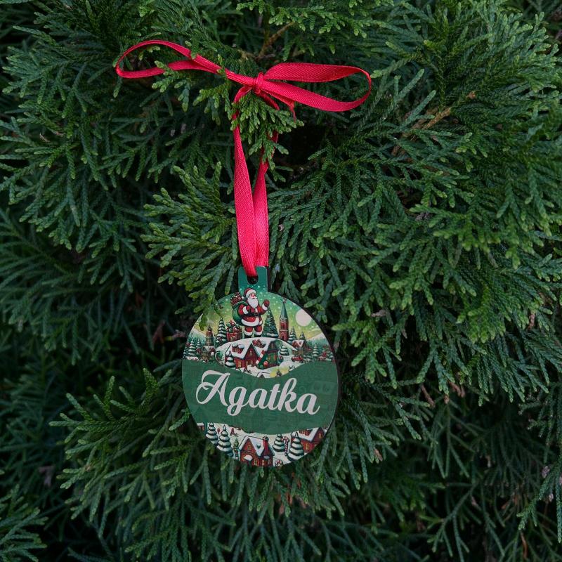 Bombka choinkowa drewniana z imieniem zawieszka do prezentów