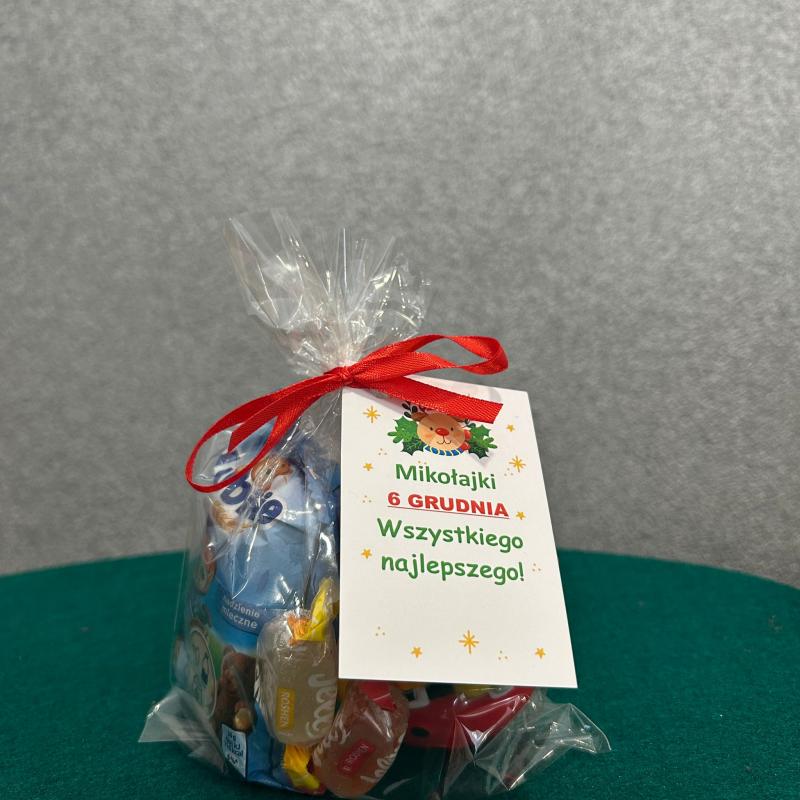 - Kartkę okolicznościową z napisem „Mikołajki, 6 grudnia, Wszystkiego najlepszego!”, z miejscem na wpisanie imienia, co dodaje prezentowi osobisty charakter.