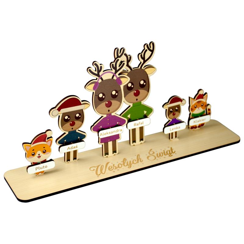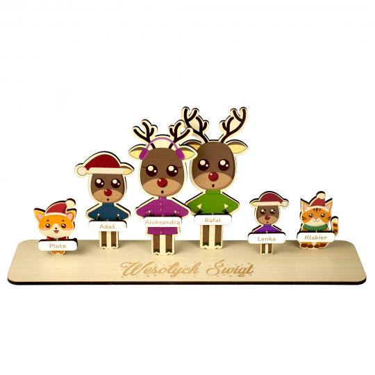 Spersonalizowana rodzina reniferów na święta z podstawką