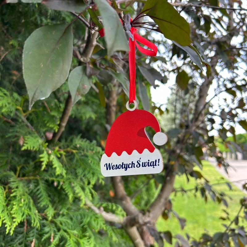 Kolorowa bombka zawieszka czapka Mikołaja Wesołych Świąt