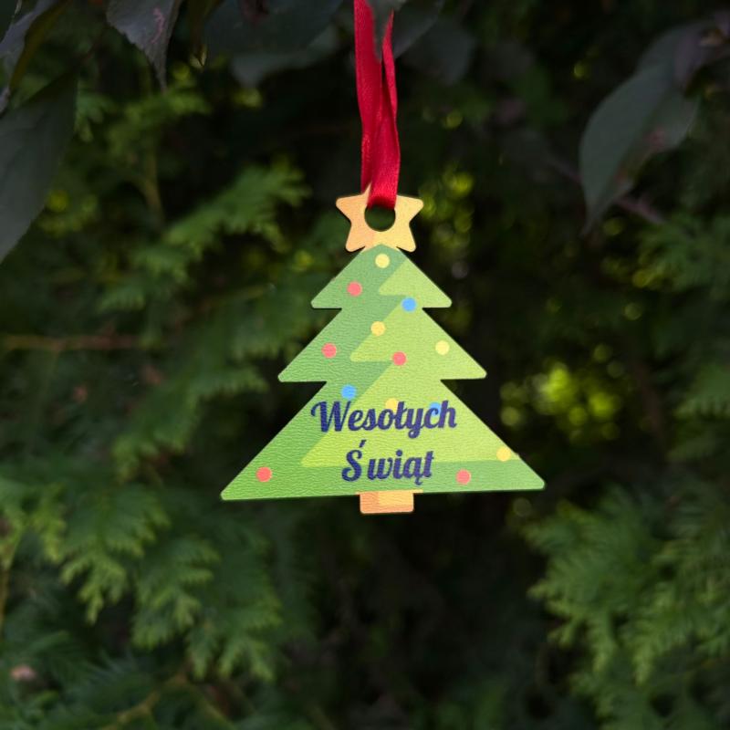 Bombka choinkowa z napisem WESOŁYCH ŚWIĄT to wyjątkowa ozdoba świąteczna. Wykonana z dbałością o detale, ta bombka stanowi niepowtarzalny element dekoracji świątecznej. Może być zawieszona na choince, w oknie lub w dowolnym miejscu, które chcesz udekorować na Święta Bożego Narodzenia.
