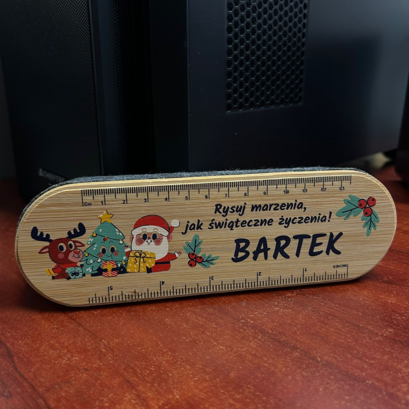 Idealny prezent z okazji Mikołajek i Świąt Bożego Narodzenia to piórnik z drewnianą pokrywką i stojakiem na telefon. Wykonany z filcu i drewna, jest trwały i estetyczny. Jego największą zaletą jest możliwość personalizacji, co czyni go wyjątkowym i niepowtarzalnym. Na pokrywce można umieścić wybrany przez Ciebie tekst lub grafikę, co sprawi, że obdarowana osoba poczuje się szczególnie. To praktyczny i elegancki dodatek, który umili każdy dzień w szkole i nie tylko.