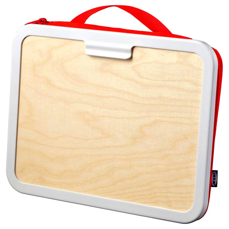 - Plan lekcji z własnym tekstem wykonany z wysokiej jakości drewna MDF o grubości 3mm i przyczepionym do walizki na stałe.