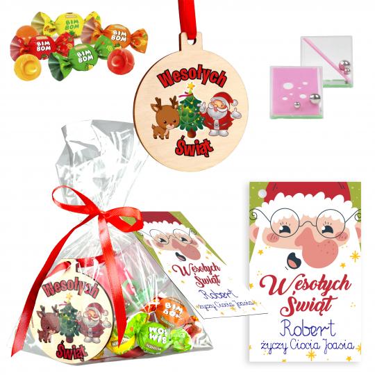 - Kartkę okolicznościową z napisem „Wesołych Świąt”, z miejscem na wpisanie imienia, co dodaje prezentowi osobisty charakter.
