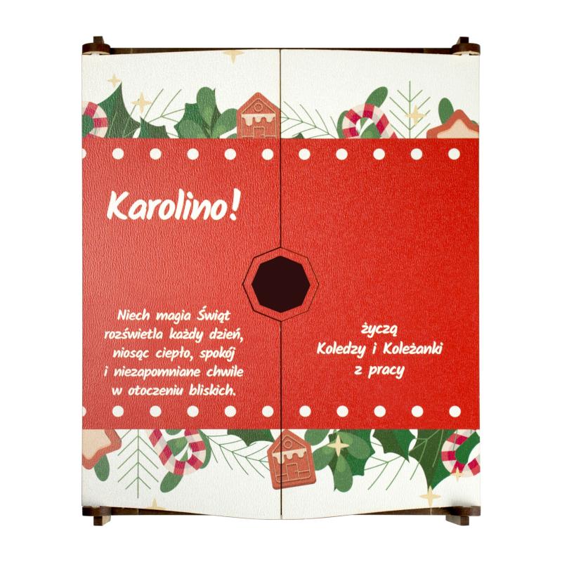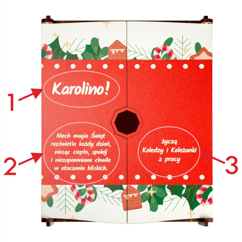 - Drewniane pudełko z personalizowanym wieczkiem to wyjątkowy sposób na przekazanie świątecznych życzeń. Dzięki możliwości umieszczenia własnego tekstu lub dedykacji, staje się niepowtarzalnym i eleganckim prezentem, idealnym zarówno dla bliskich, jak i współpracowników.