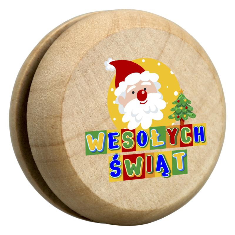 - Drewniane jojo z kolorowym Mikołajem i napisem "Wesołych Świąt" - to idealny prezent na Mikołajki, który wnosi odrobinę świątecznej radości i retro uroku.