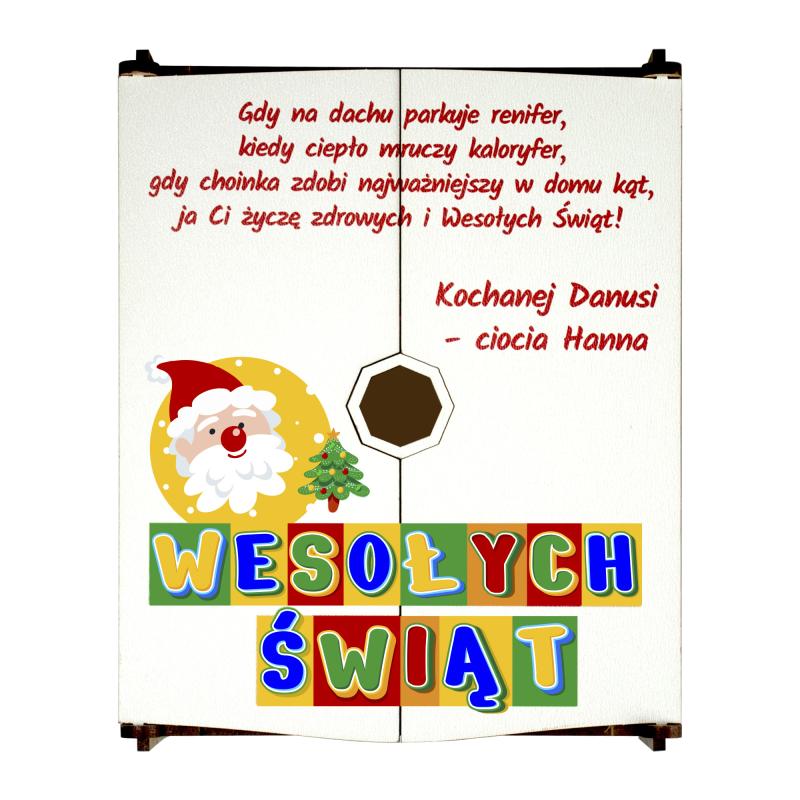 - Grę „Kółko i Krzyżyk” ze świątecznym nadrukiem na wieczku „Wesołych Świąt” – klasyczna gra w nowoczesnym, mikołajkowym wydaniu, która zapewni mnóstwo radości.