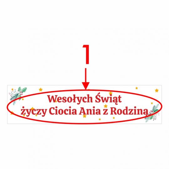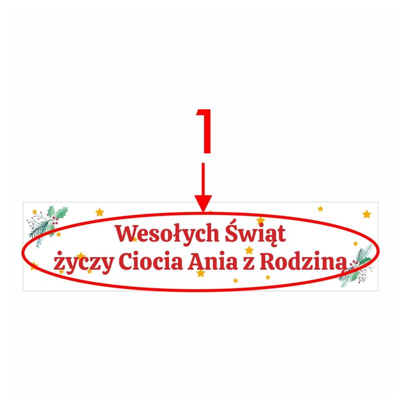 To pole przeznaczone na Twój krótki tekst. Pamiętaj, aby tekst nie był za długi, ponieważ zmieni się układ tekstu, a to wpłynie na jego rozmiar. Jeśli chcesz, aby to miejsce było puste, zaznacz "Nie chcę personalizować tego pola (brak tekstu)".