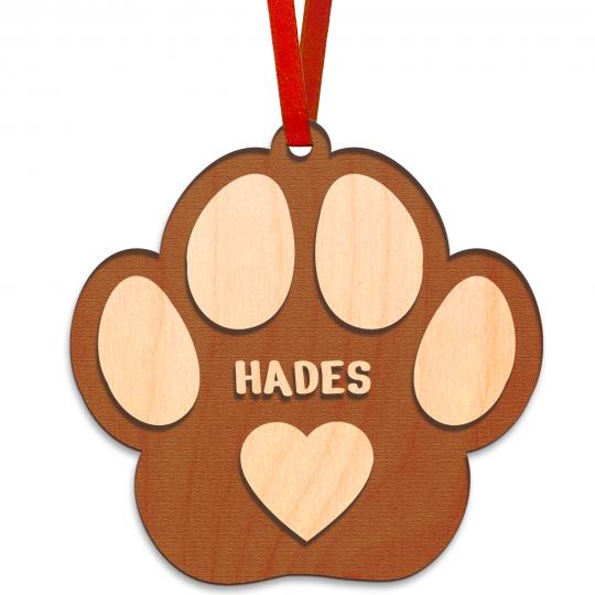 Drewniana bombka w kształcie łapki to wyjątkowa zawieszka świąteczna dla psa lub kota. Grawerowane imię nadaje jej osobisty charakter, a naturalne drewno pięknie komponuje się z choinkowymi ozdobami.