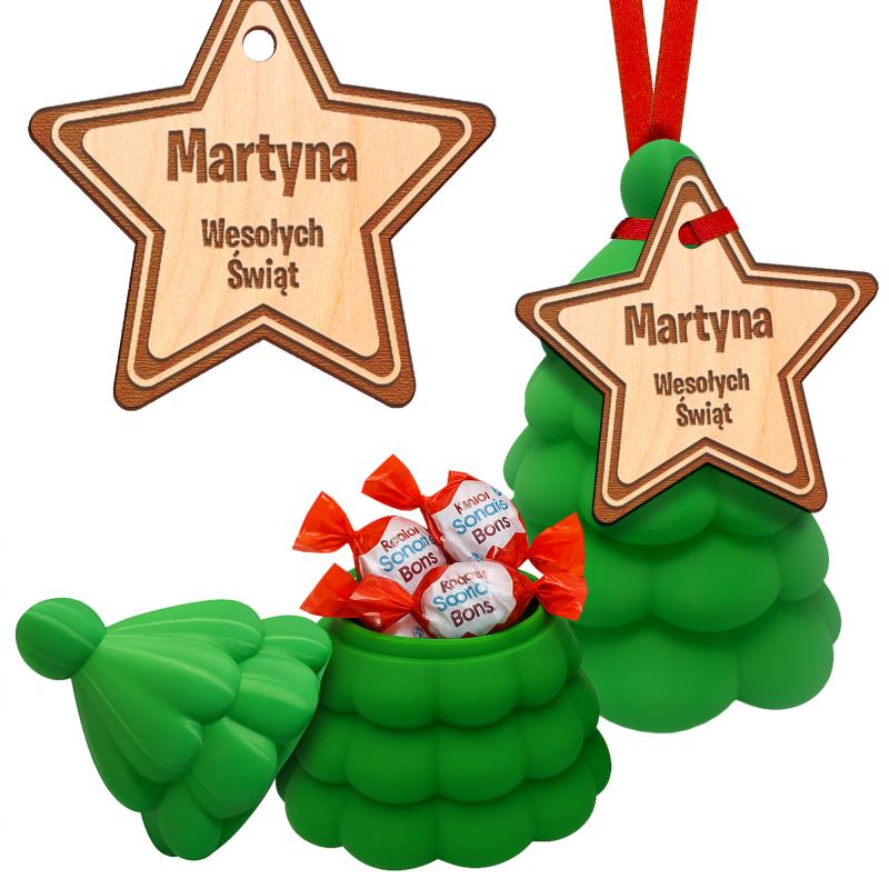 Bombka choinka z imieniem pudełko na słodycze święta prezent