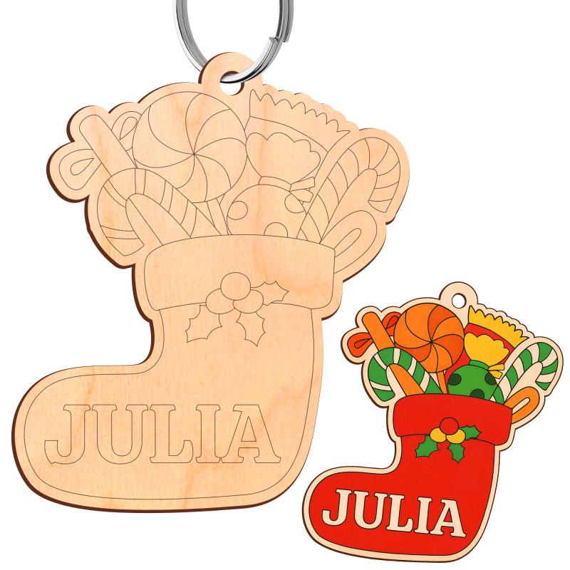 Brelok do kolorowania Skarpeta z imieniem – świąteczny prezent DIY
