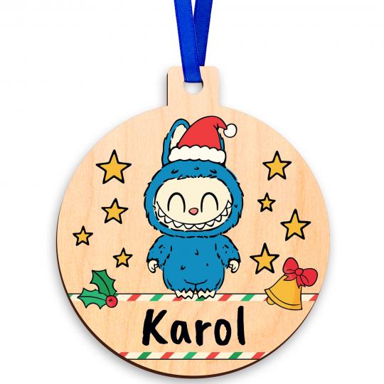 Bombka Labubu dla chłopca z grawerowanym imieniem – świąteczna zawieszka na choinkę