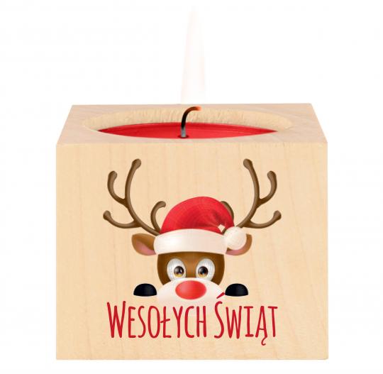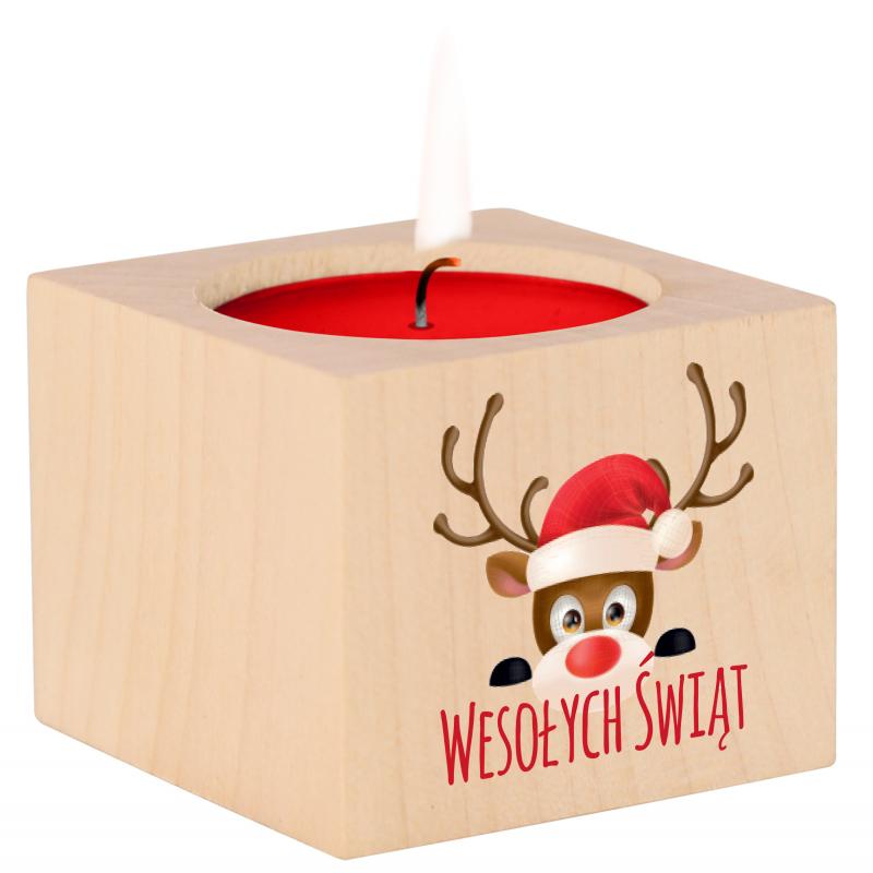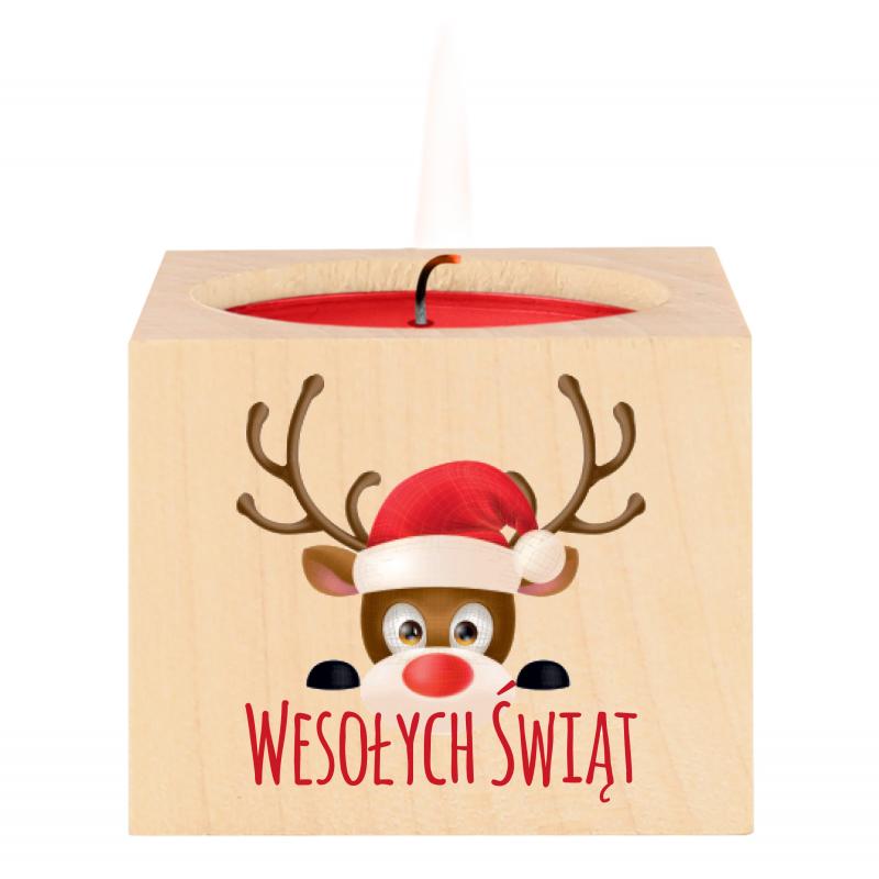 Drewniany świecznik świąteczny renifer Wesołych Świąt prezent