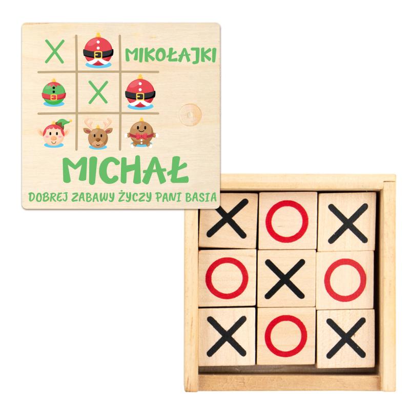 Drewniana gra Kółko i Krzyżyk z imieniem – prezent na Mikołajki