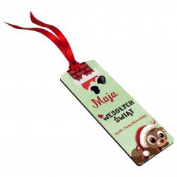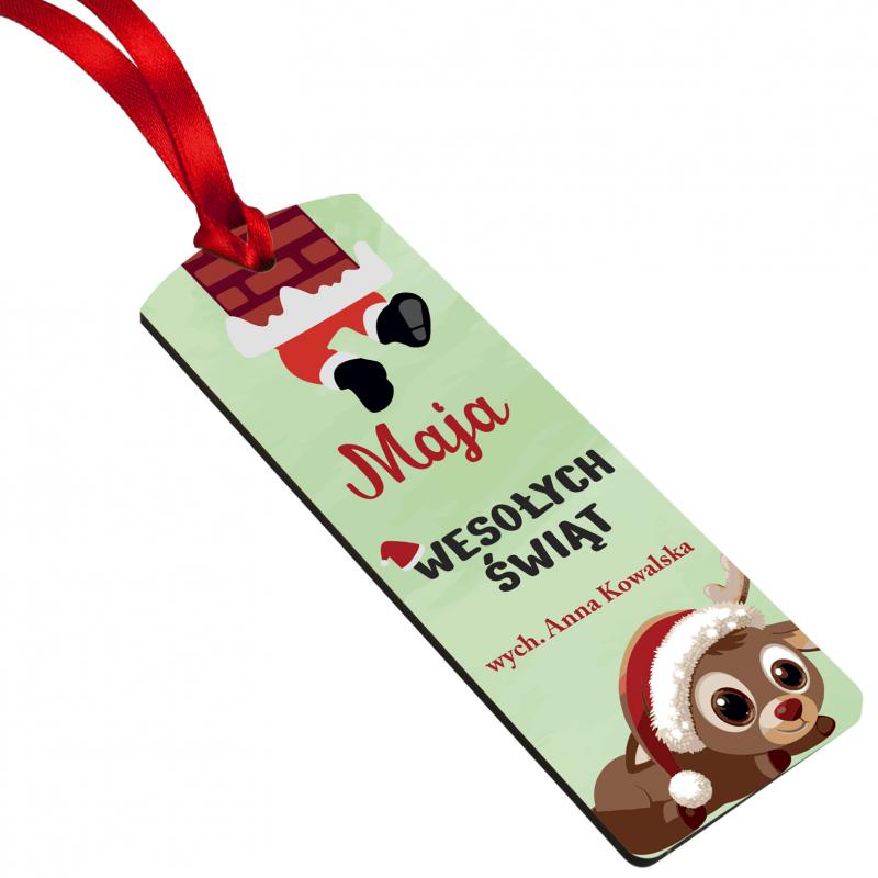 Drewniana zakładka do książki z imieniem na święta Wesołych Świąt