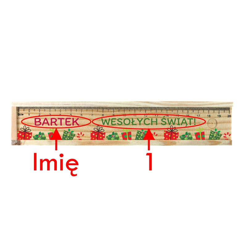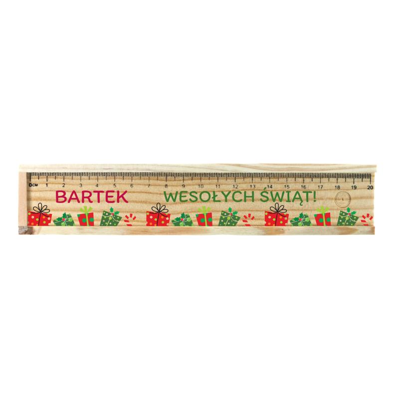 - Drewniana linijka 20 cm z kolorowym świątecznym nadrukiem.