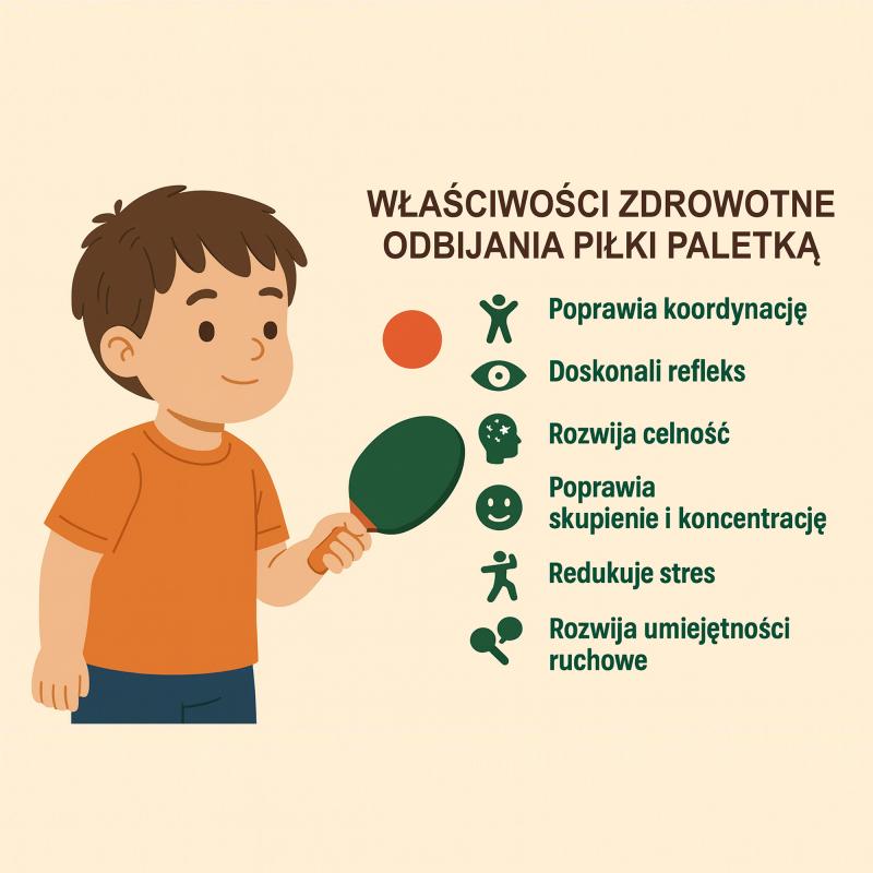 Poprawia koordynację – regularne odbijanie piłki paletką pomaga lepiej synchronizować ruchy rąk i oczu.