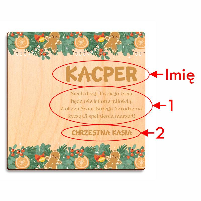 Drewniany bon świąteczny z imieniem i motywem pierniczków