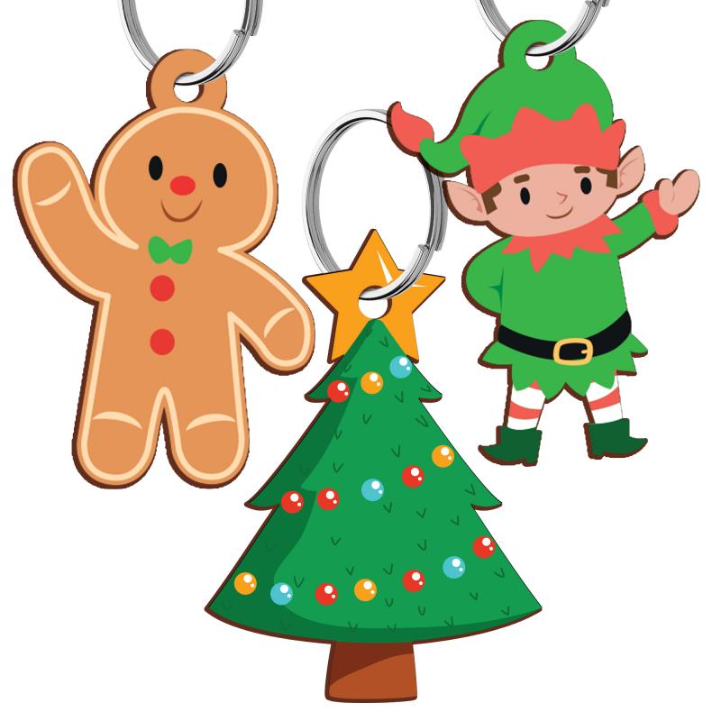 - Brelok świąteczny (1 szt.) – wybierany losowo spośród trzech wzorów: pierniczka, choinki lub elfa. Można go przypiąć do kluczy, piórnika lub plecaka, co czyni go drobnym, ale praktycznym upominkiem.