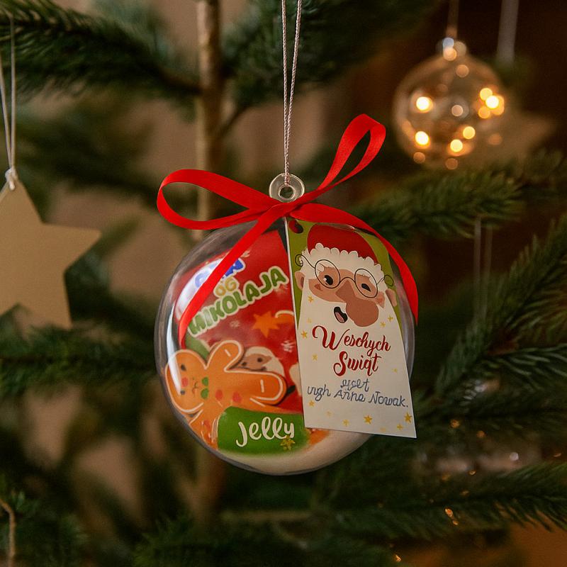Gotowy zestaw świąteczny w przezroczystej bombce to wyjątkowy prezent, który idealnie sprawdzi się jako upominek dla uczniów, przedszkolaków lub dzieci na klasową Wigilię. Każdą bombkę można powiesić na choince, tworząc piękną, spersonalizowaną dekorację z imieniem dziecka. To doskonały prezent od nauczyciela lub wychowawcy, który wprowadzi świąteczną atmosferę do każdej sali.
