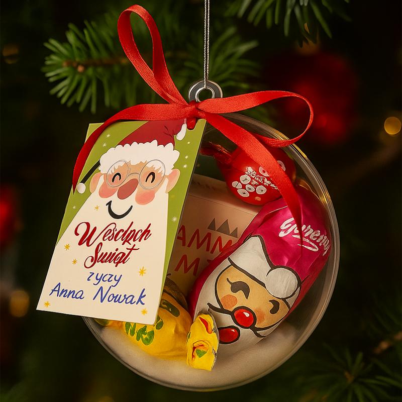 Gotowe zestawy prezentowe w bombkach to połączenie elegancji, personalizacji i świątecznej magii. Sprawdzą się jako upominki dla klasy, grupy przedszkolnej, dzieci w żłobku, gości wigilijnych lub członków rodziny. Każda bombka staje się nie tylko prezentem, ale też piękną ozdobą świąteczną, która tworzy ciepłą, rodzinną atmosferę pełną radości i uśmiechu.