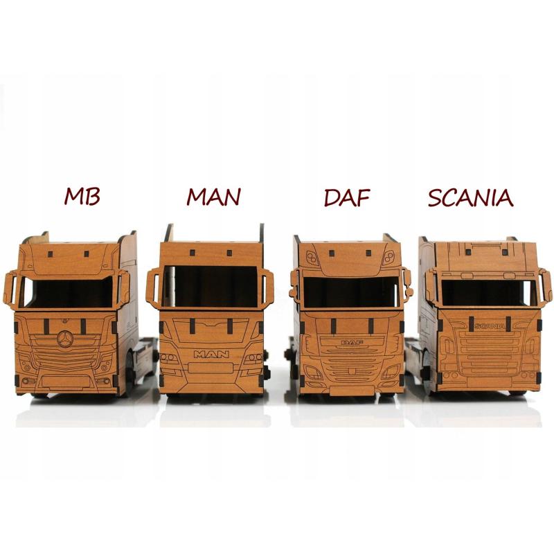 Produkt oferuje możliwość wyboru marki TIR-a, dzięki czemu prezent staje się bardziej wyjątkowy i dopasowany do osoby, która go otrzyma. To idealny sposób, by nadać upominkowi indywidualny charakter i podkreślić pasję do konkretnej marki ciężarówek.