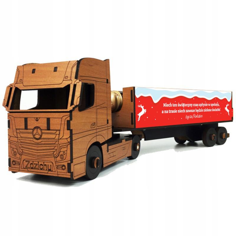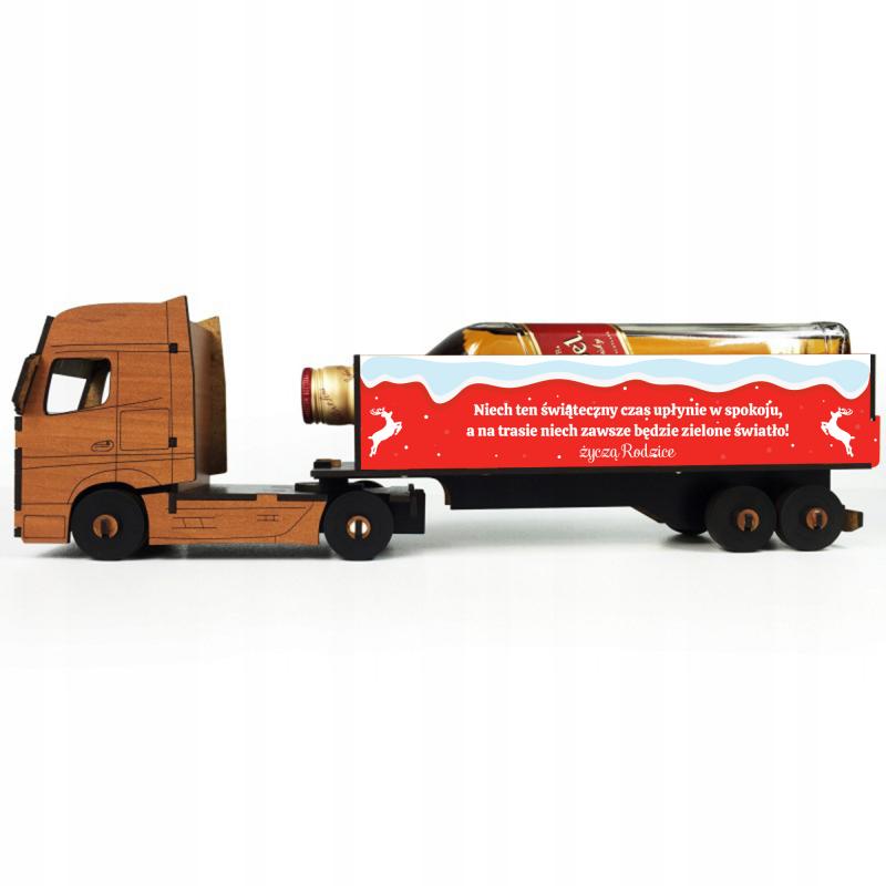 Drewniany TIR wodowóz na butelkę to wyjątkowy prezent świąteczny dla kierowcy, taty lub partnera, który zachwyca oryginalnym wyglądem i możliwością personalizacji. To połączenie eleganckiego designu, precyzyjnego wykonania i świątecznego klimatu – idealny pomysł na prezent pod choinkę.