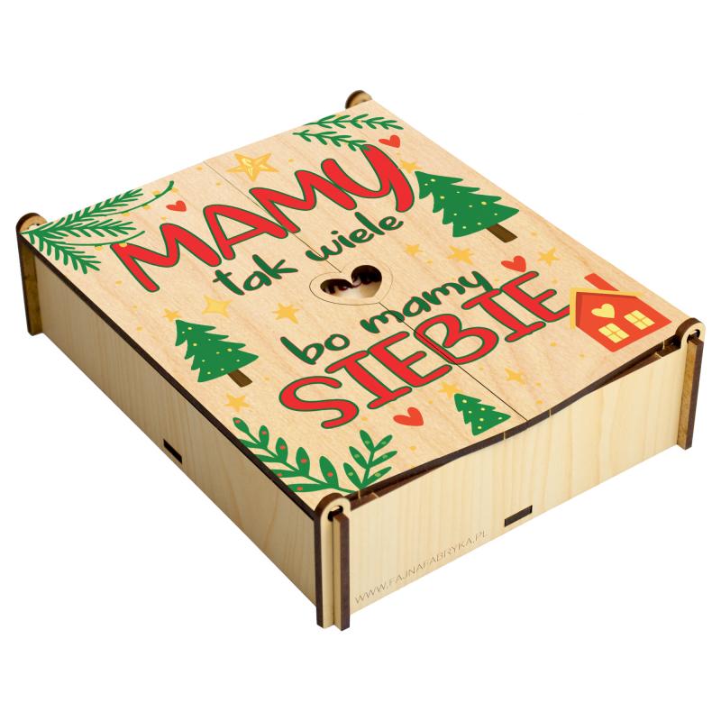 Drewniane pudełko świąteczne na misie prezent rodzinny