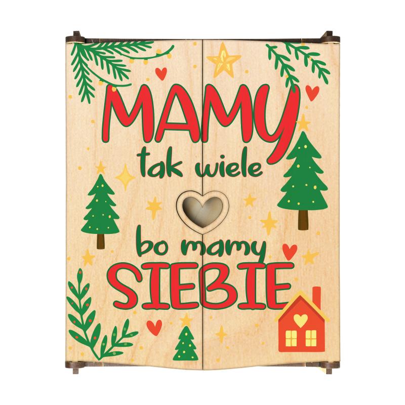 Drewniane pudełko świąteczne z kolorowym nadrukiem to piękny prezent rodzinny. Idealne na misie, drobiazgi i upominki, tworzy ciepły, wyjątkowy klimat Świąt.