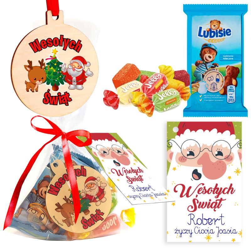 Świąteczny zestaw Lubisie cukierki bombka z bilecikiem