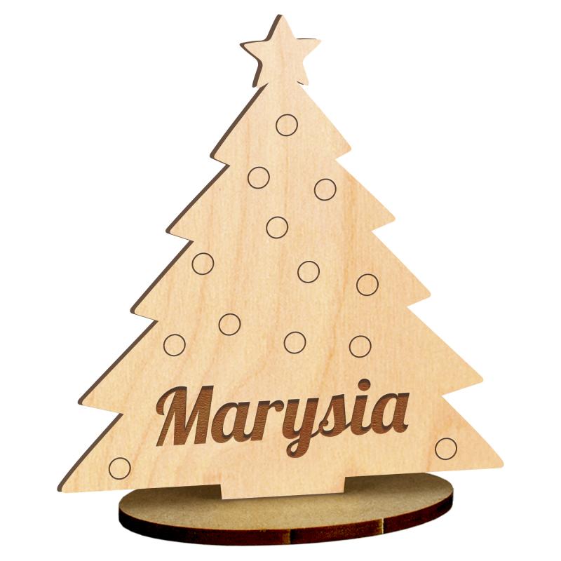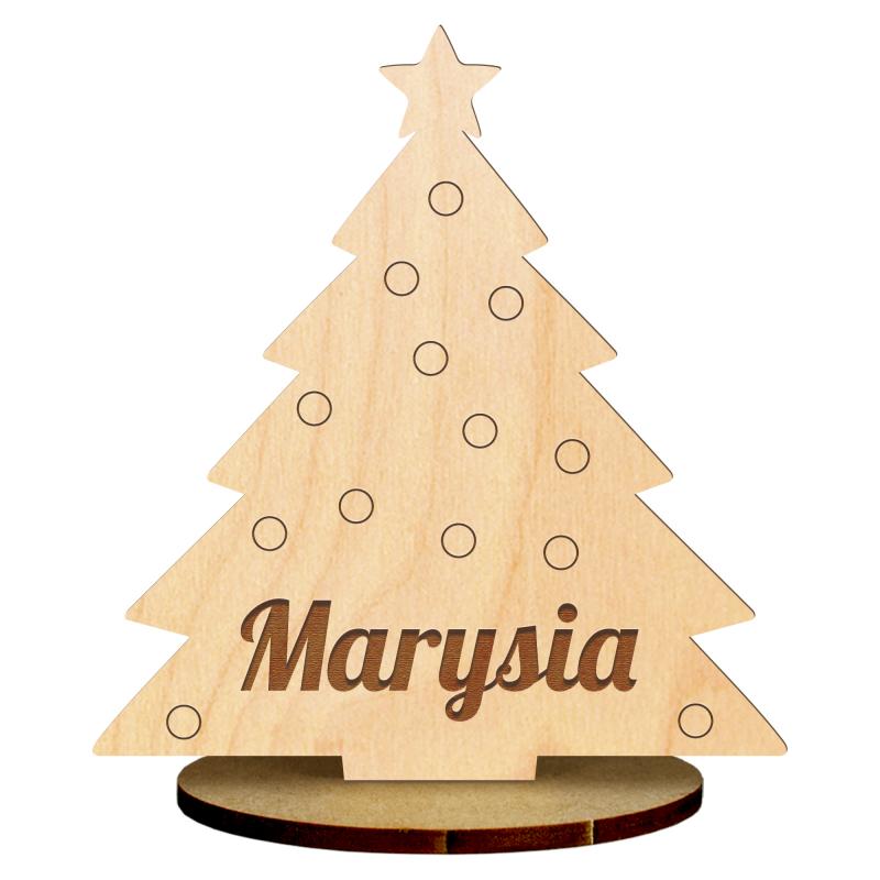 Drewniana choinka grawerowana z imieniem dziecka dekoracja