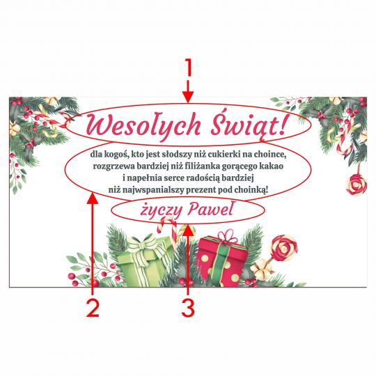 Idealnym dodatkiem będzie kolorowa bombka z napisem WESOŁYCH ŚWIĄT. To drobiazg, który od razu wprowadza w świąteczny nastrój.