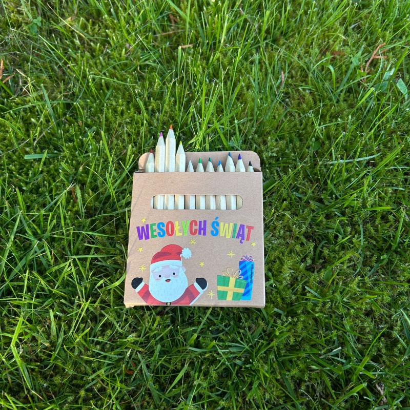 Świąteczne kredki z nadrukiem i Mikołajem dla Dzieci do szkoły