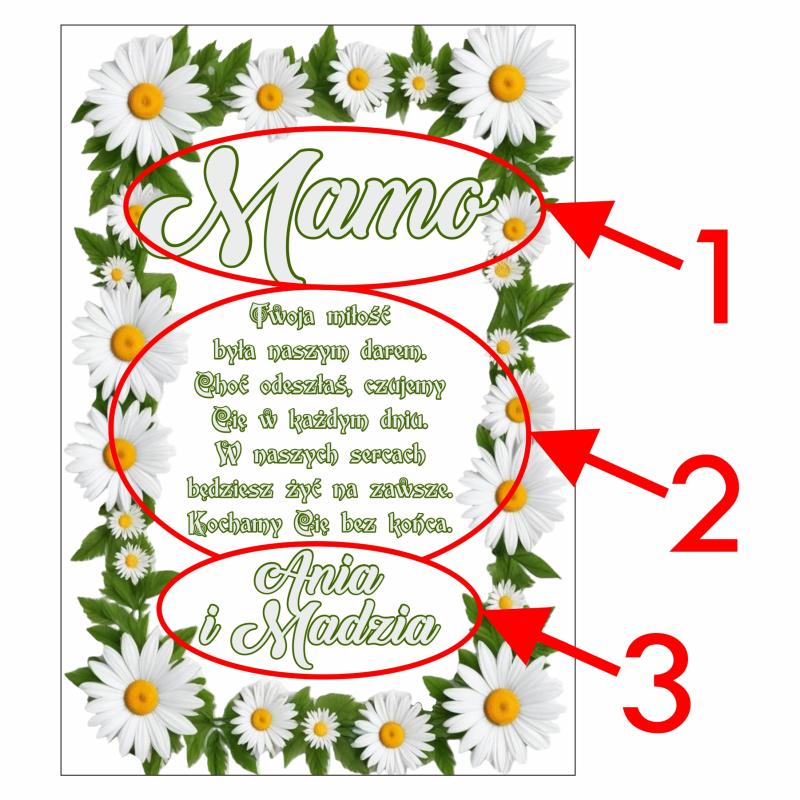 - Personalizacja: Dedykacja nadrukowana za pomocą technologii UV, gwarantująca trwałość przez długie lata. Możliwość zmiany tekstu na dowolną okazję – Dzień Matki, rocznice, imieniny czy po prostu na pamięć o bliskich.