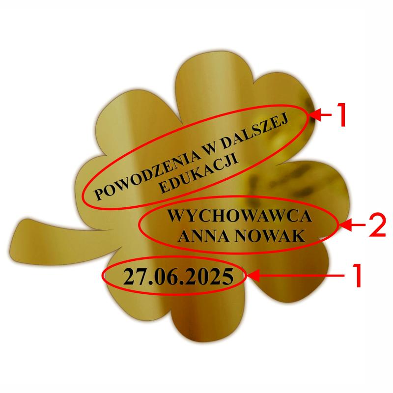 Magnes koniczynka lustrzana na zakończenie roku z podpisem nauczyciela