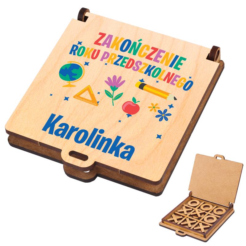 Drewniana gra kółko i krzyżyk z personalizacją to wyjątkowy i kreatywny upominek na zakończenie roku przedszkolnego, który łączy funkcję zabawy i pamiątki.
