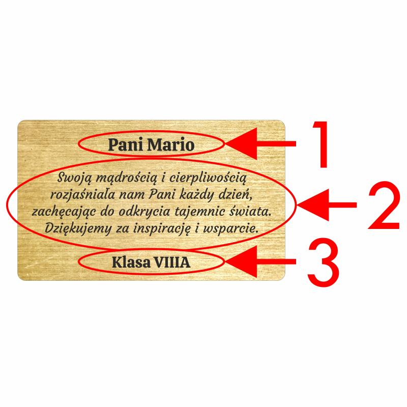 - Grawerowana złota tabliczka dedykowana specjalnie dla wspaniałego Nauczyciela wykonana techniką laserową, która daje wiele lat trwałości