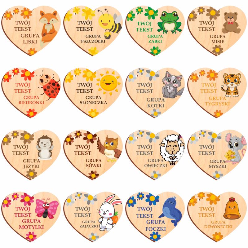 W tym miejscu wybierz nazwę swojej grupy przedszkolnej lub żłobkowej. Grafika automatycznie zostanie zmieniona pod nazwę grupy.