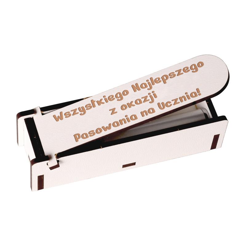 Pudełko na latarkę z dedykacją na z okazji Pasowania na Ucznia