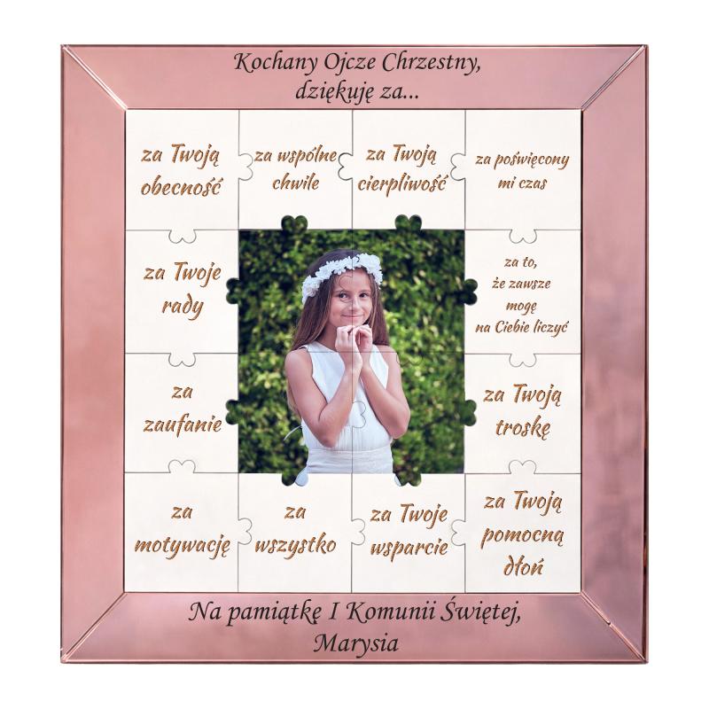 Foto puzzle podziękowanie komunijne ze zdjęciem w różowej ramie