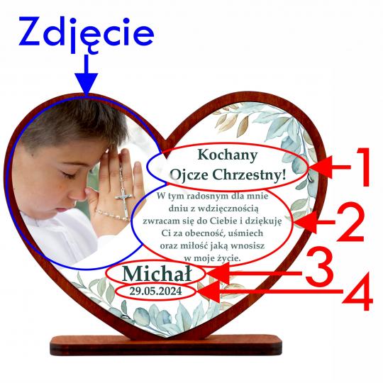 Statuetka dla rodziców chrzestnych to piękny i osobisty sposób na podziękowanie z okazji pierwszej Komunii Świętej dziecka. Wykonana jest z trwałego materiału, a na jej powierzchni umieszczona jest plexi, która nadaje subtelny połysk. Statuetka ma kształt sercaa , co czyni ją idealnym dodatkiem do wystawy w domu czy biurze rodziców chrzestnych. To niezwykła pamiątka, która zachowa piękne wspomnienia z tego wyjątkowego dnia na wiele lat.