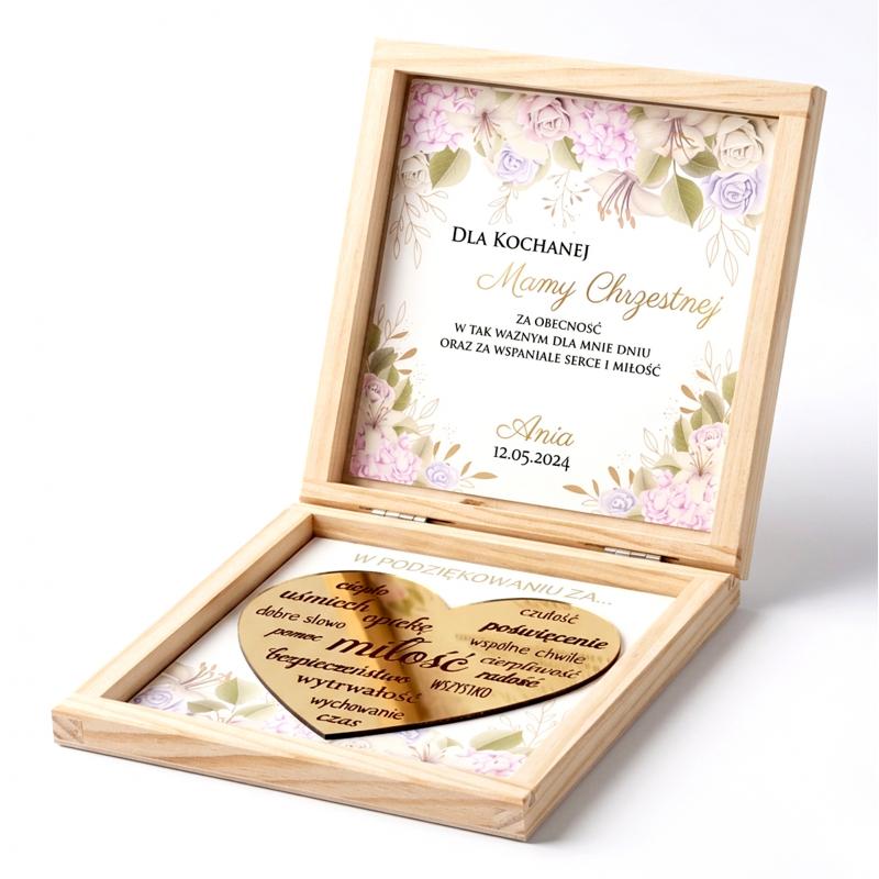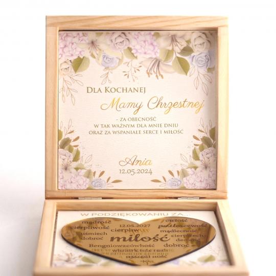Drewniane pudełko podziękowanie komunijne z sercem