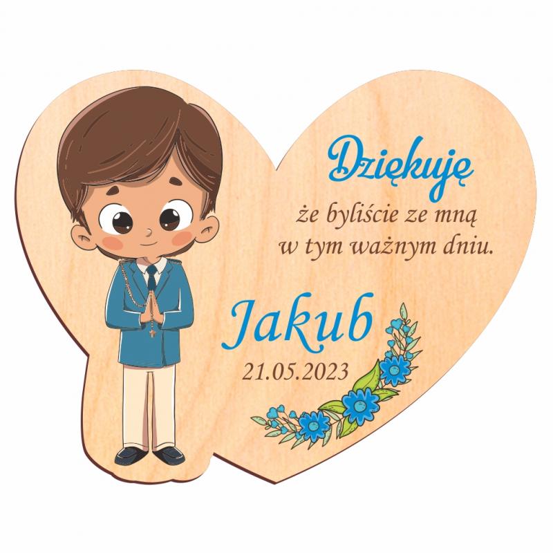 Podziękowanie dla gości komunii magnes z chłopcem i nadrukiem
