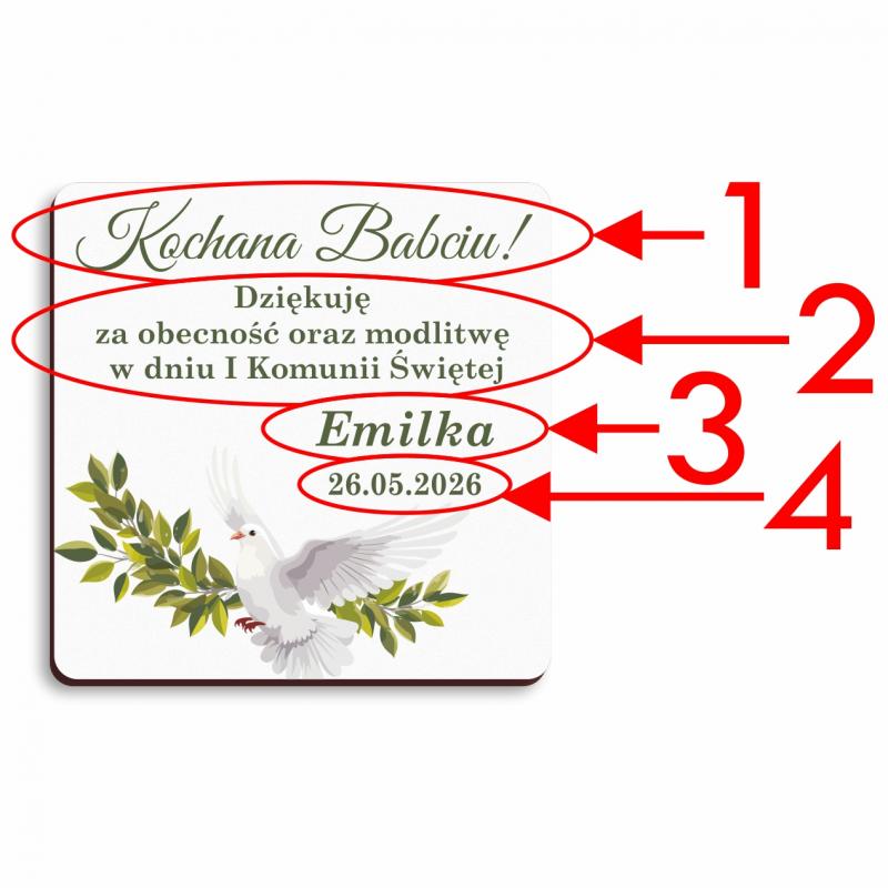 Magnes podziękowanie – I Komunia Święta z motywem gołębia
