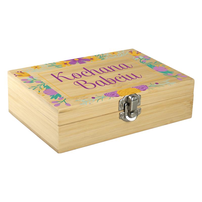 Personalizowana tabliczka z życzeniami oraz podpisem wnuków dodaje prezentowi osobistego charakteru. Kolorowy nadruk na wieczku sprawia, że całość prezentuje się niezwykle gustownie i jest gotowa do wręczenia na wyjątkową okazję.