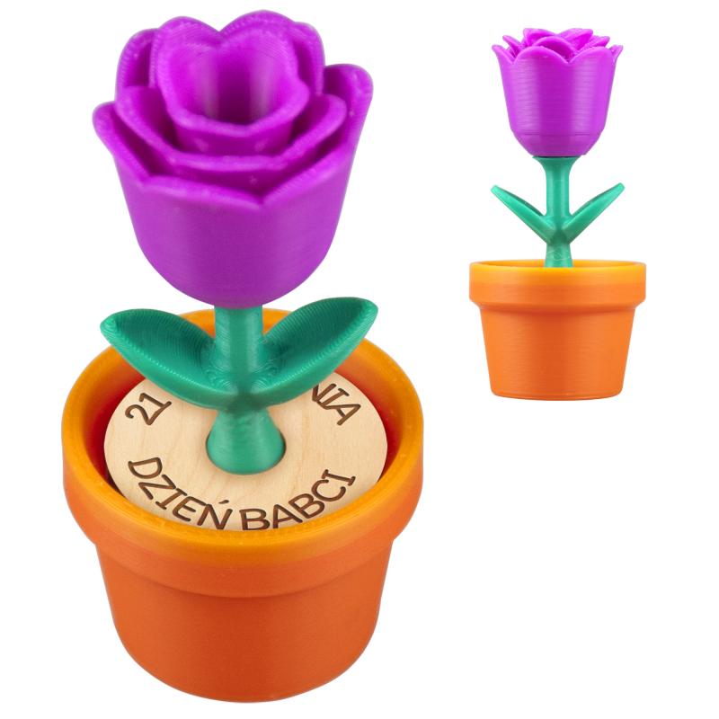 Uroczy kwiatek w doniczce to drobny, a jednocześnie wyjątkowo efektowny upominek przygotowany specjalnie na Dzień Babci. Energetyczne kolory, staranne wykonanie i subtelny grawer Dzień Babci – 21 stycznia sprawiają, że prezent wygląda radośnie i przyciąga wzrok, a jednocześnie pięknie wpisuje się w charakter rodzinnego święta.