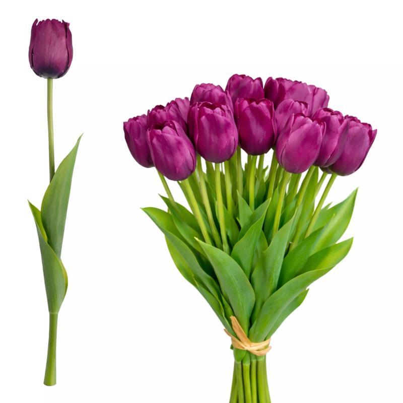Sztuczny tulipan burgundowy – 1 sztuka to elegancka i trwała dekoracja o realistycznym wyglądzie. Głęboki, burgundowy kolor oraz starannie wykonane płatki i liście wiernie imitują naturalny kwiat, bez potrzeby pielęgnacji.